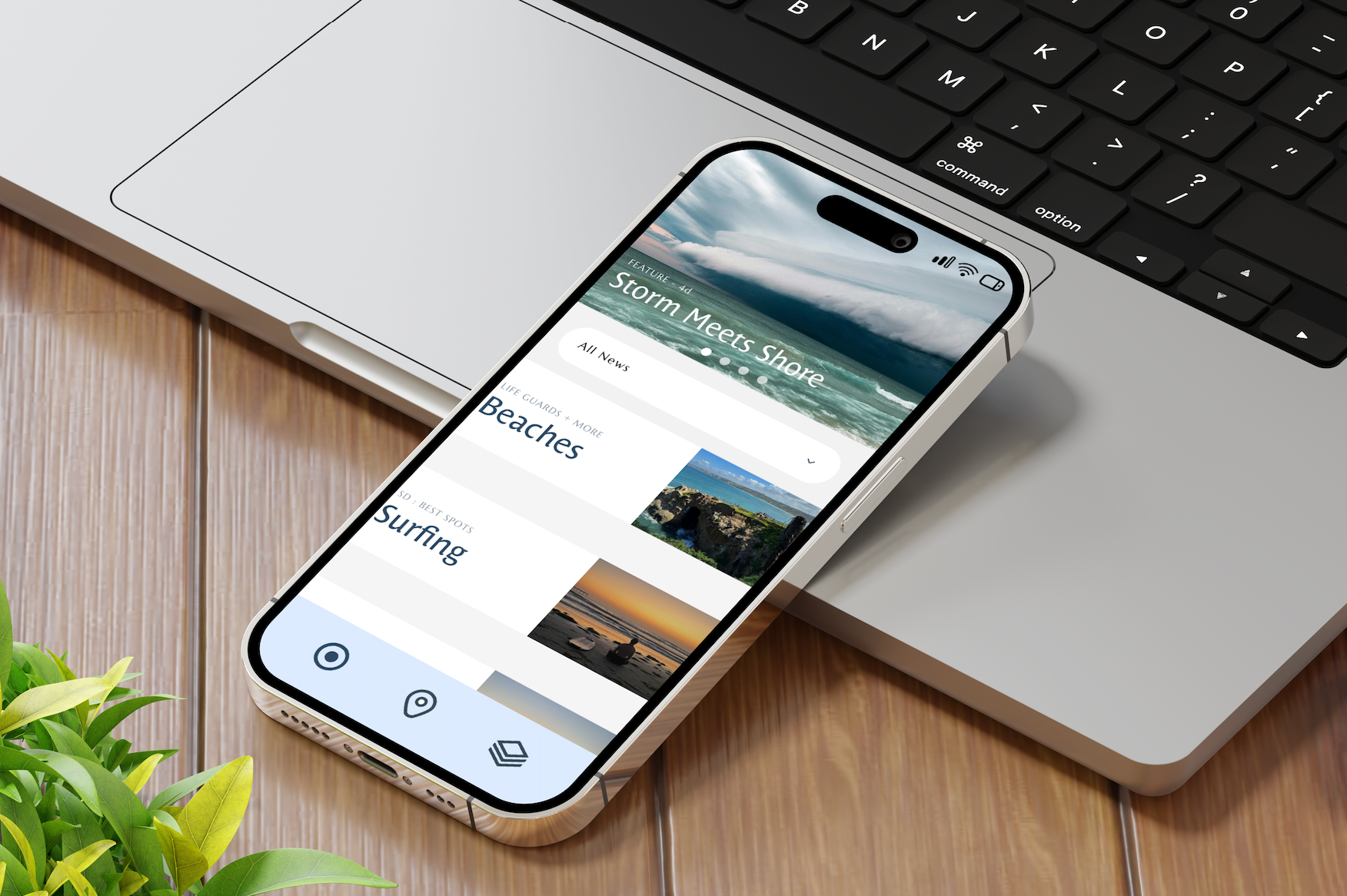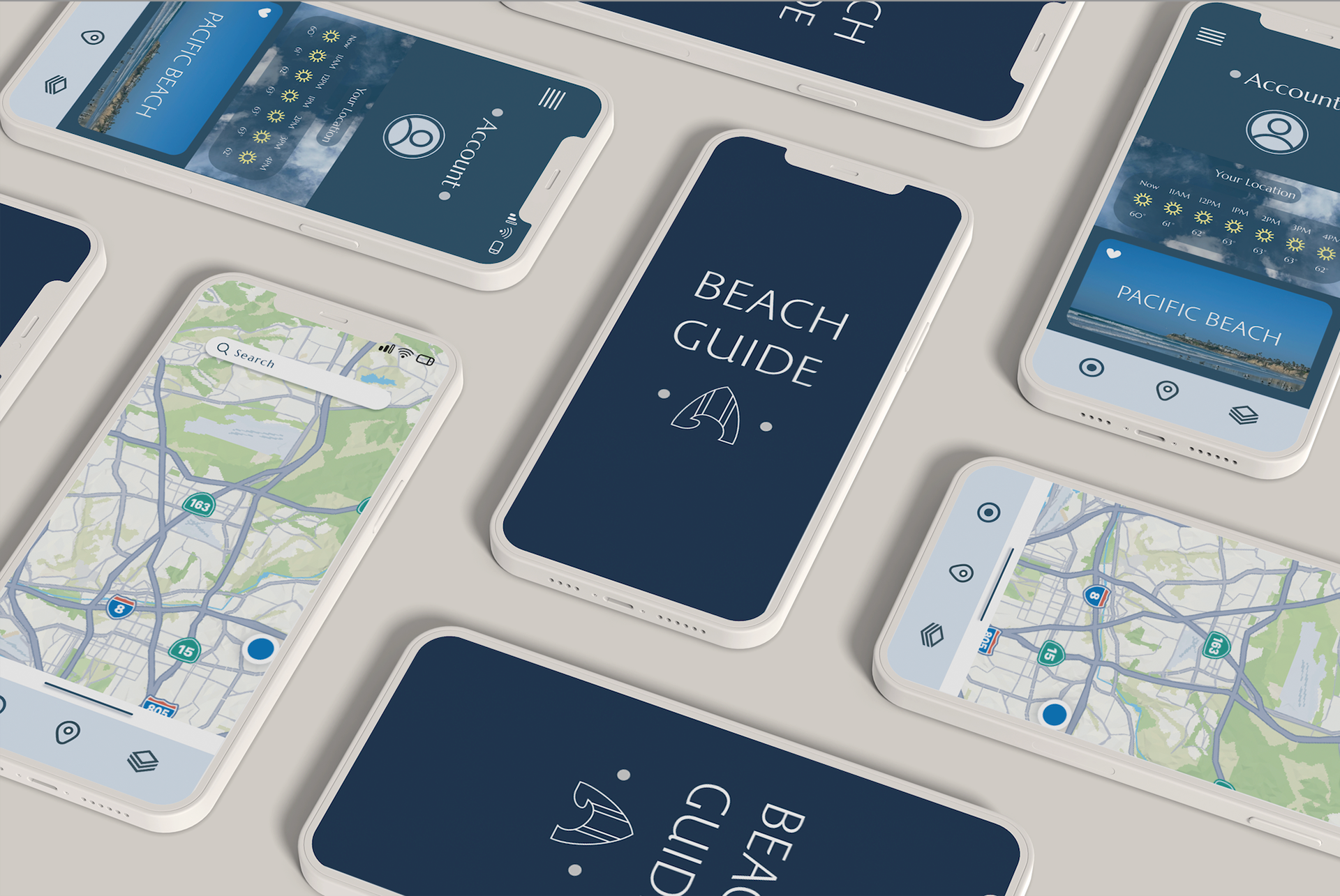 Continuing the concept from the Passion Guide, I created an app prototype on Figma based on the themes of my Guide to San Diego Beaches. I created a new logo to use in my app; however, I tried to keep a lot of things as a reference to my project such as the same top three beaches and the same 20 locations. First, we outlined the functionalities of this app to create our mind map. We then started to explore some sketching and preliminary screens. I then dove into designing on Figma. not all of my screens are fully functional, but I developed them enough so that the app is clear enough for the prototype. The app can be used to find a beach that fits the user the best, save favorites, search for locations, and read reccent happenings in the area.